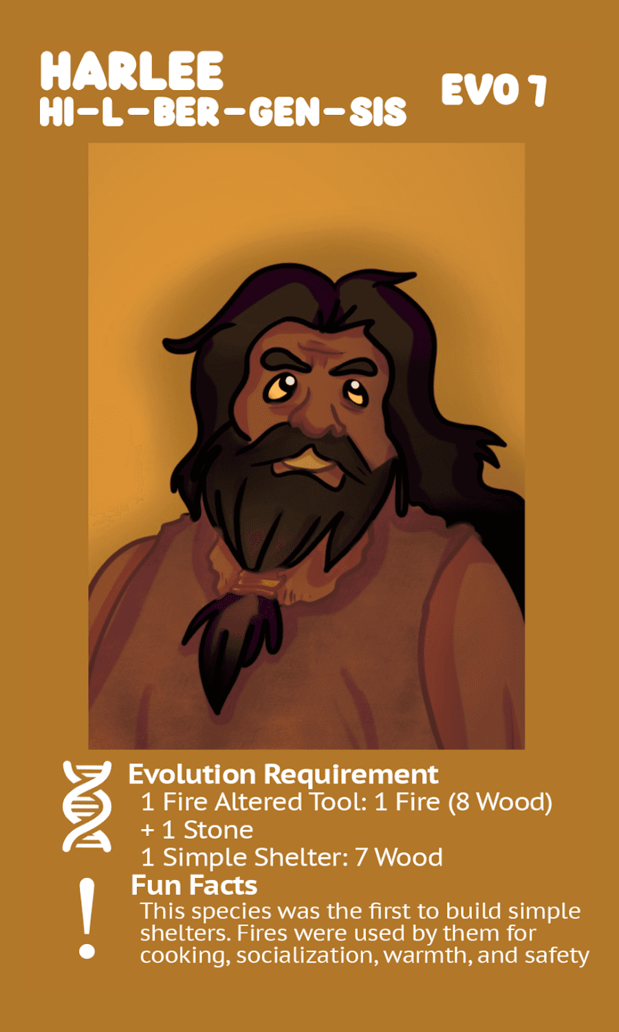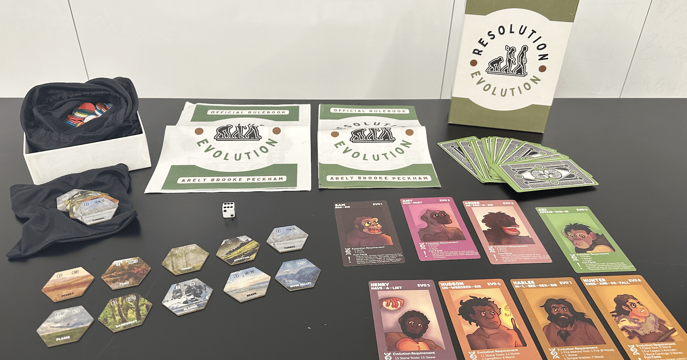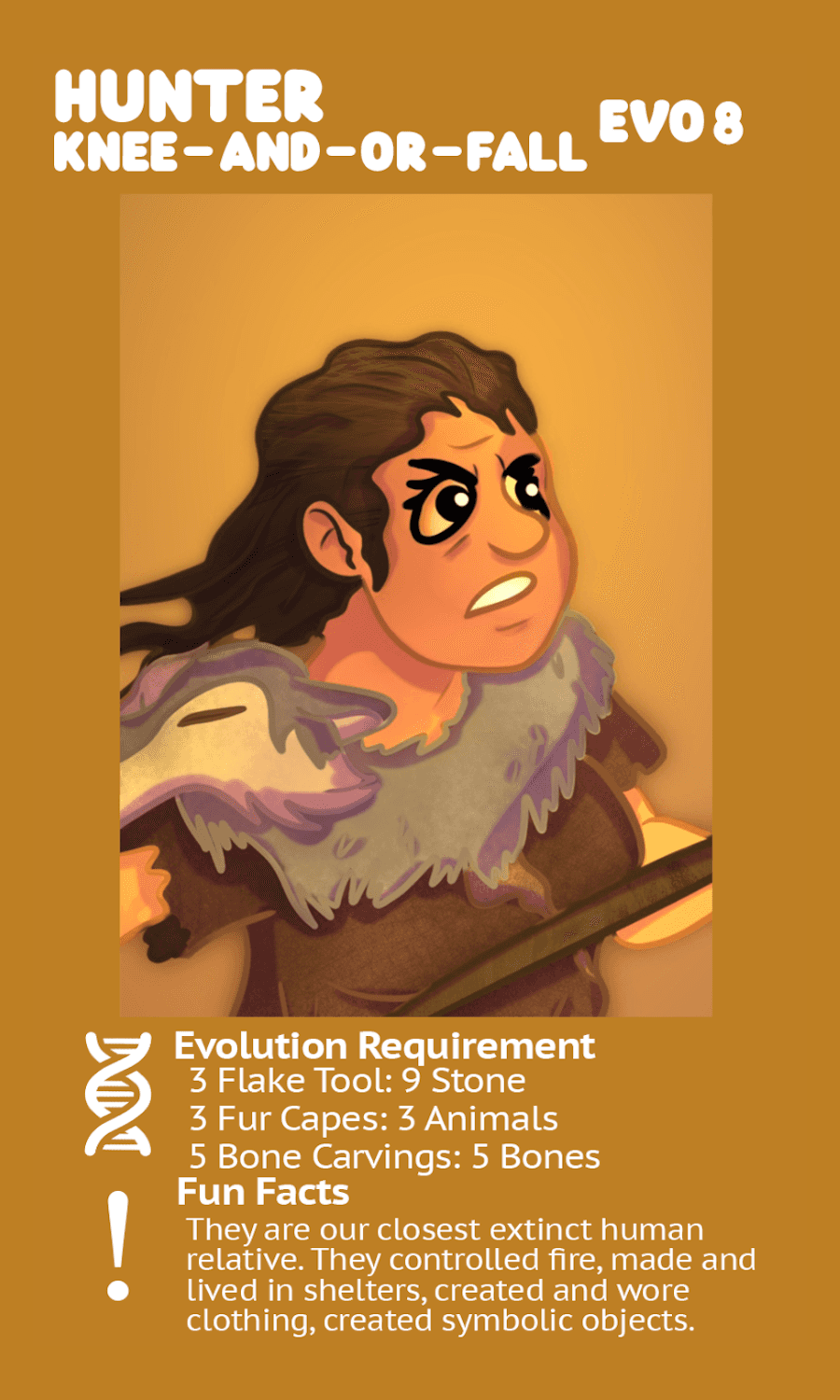An innovative educational card game that encourages players to examine the correlative impact of human evolution on the ecosystem. I designed, fabricated, tested, and iterated all components of the game. The final product is composed of: laser-cut tiles; printed cards; a custom game box; standard multicolor chips; and a custom rule book.