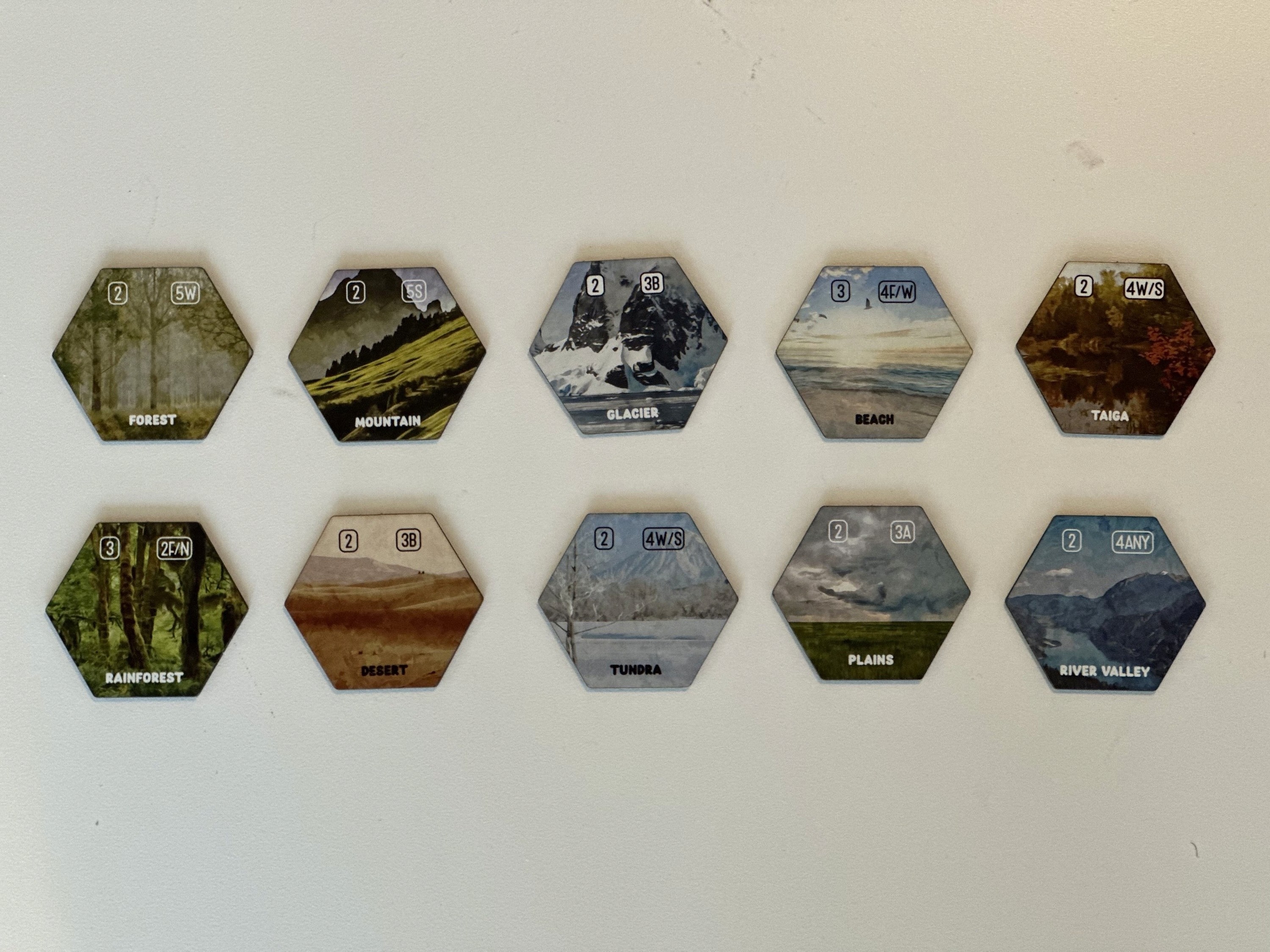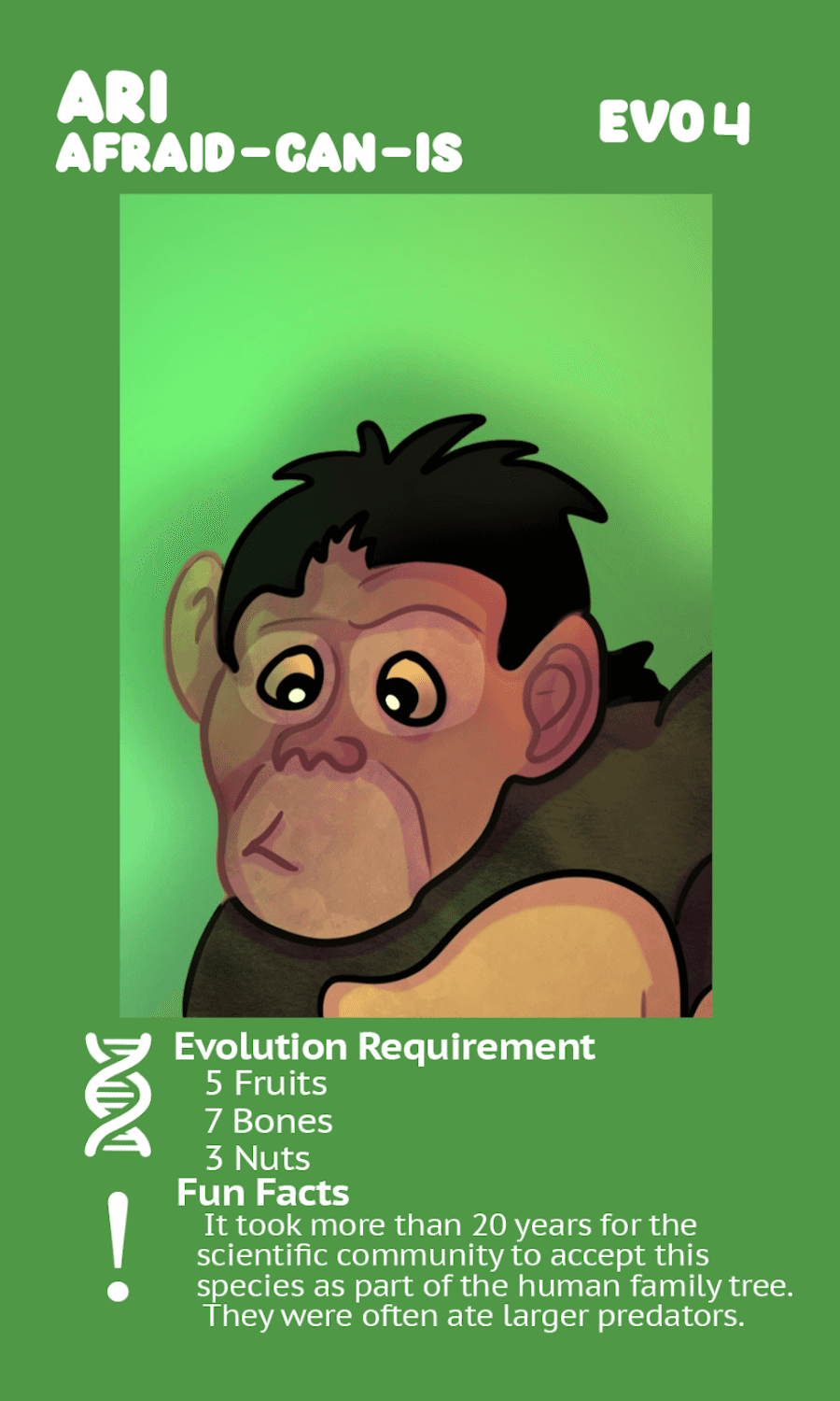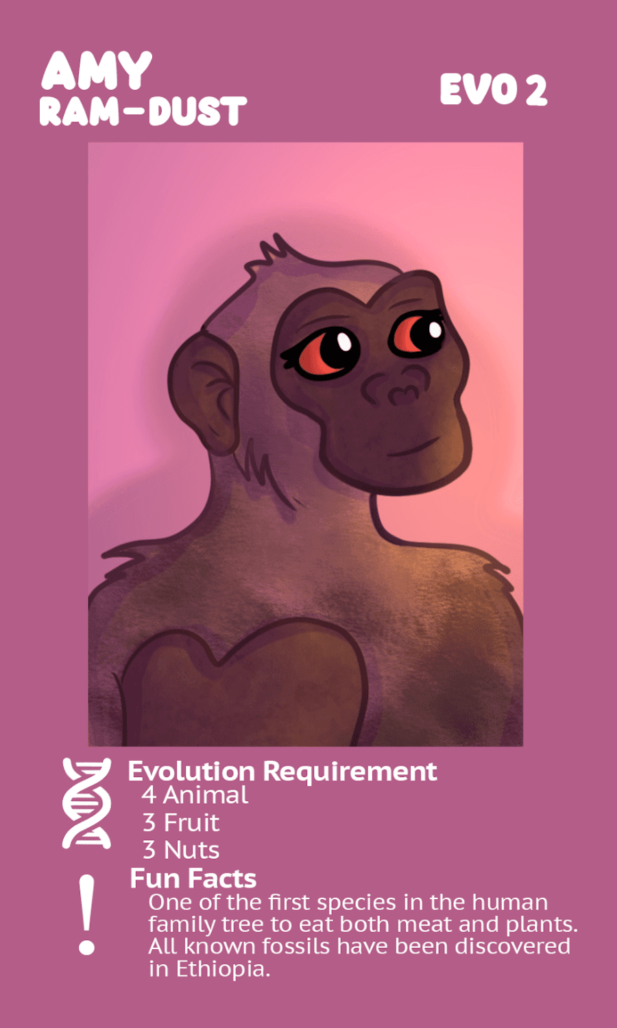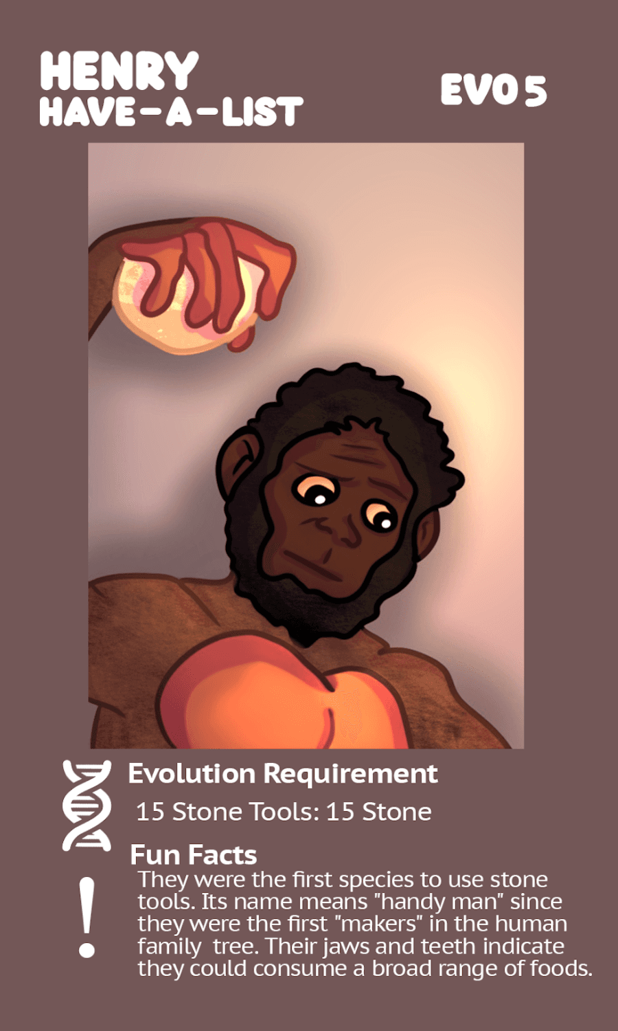 An innovative educational card game that encourages players to examine the correlative impact of human evolution on the ecosystem. I designed, fabricated, tested, and iterated all components of the game. The final product is composed of: laser-cut tiles; printed cards; a custom game box; standard multicolor chips; and a custom rule book.