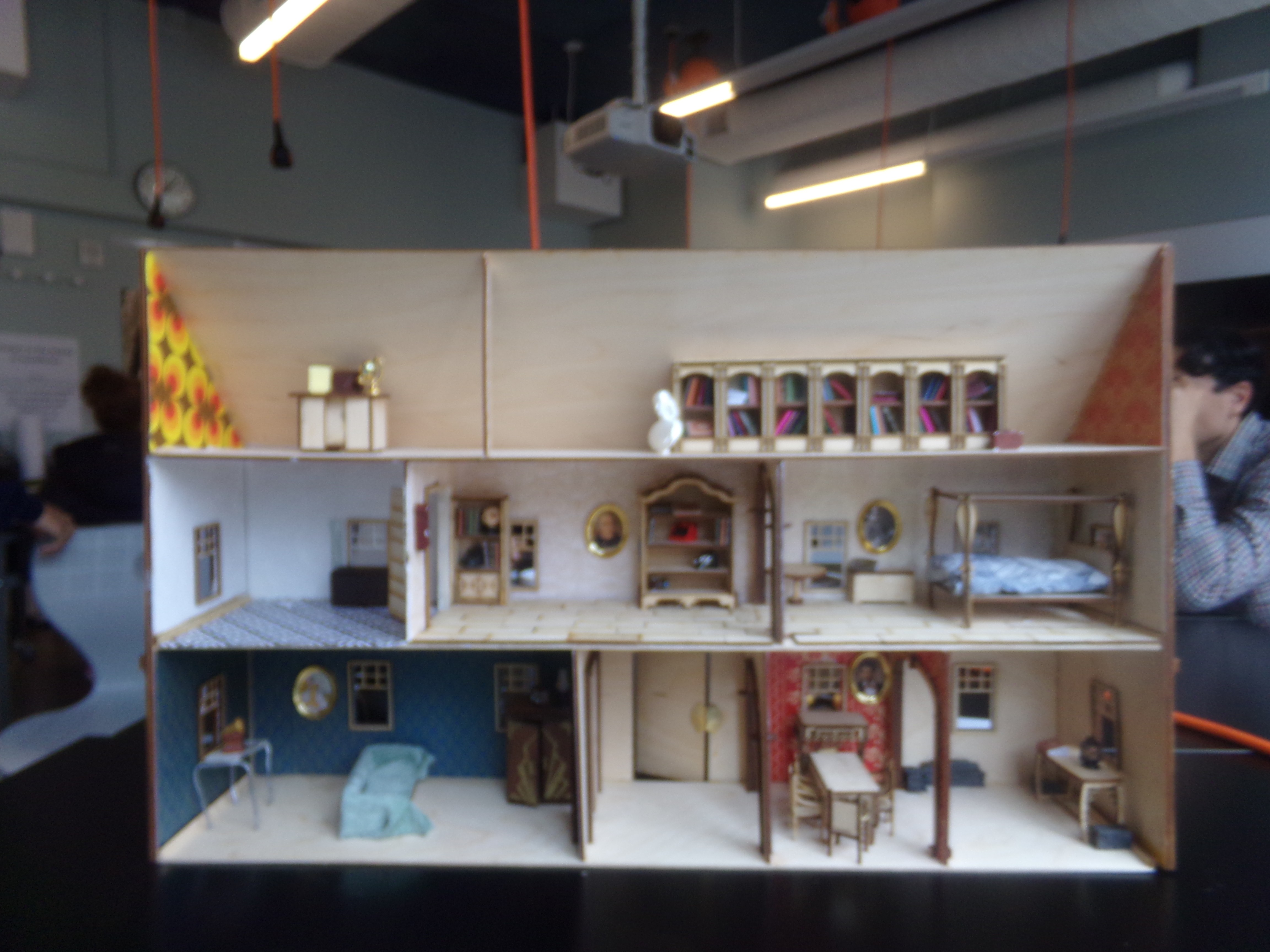 I utilized a design and architecture lens to explore American History’s seminal periods, significant events, resources, materials, and cultural and technological milestones. I designed a prototype large-scale laser-cut wood dollhouse as a hand-on interactive educational tool. Each room is dedicated to a different period in American history, and through its interior design and structural elements reflects the history, materials and figures of that era.